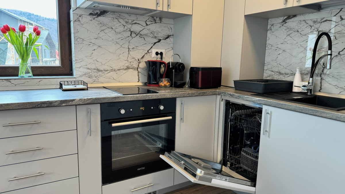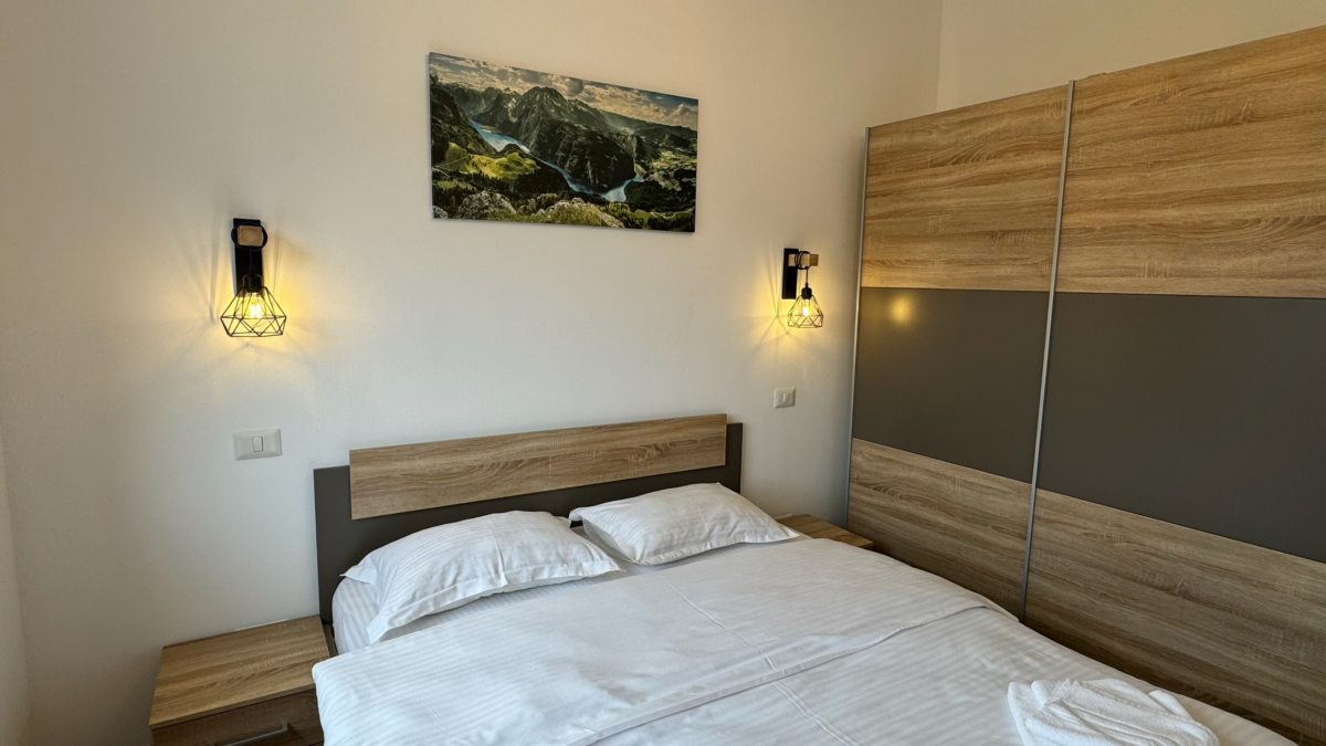 Apartamentul de 3 camere Superior este situat la etajul 2 din 3, este nou și complet utilat pentru a vă face să vă simțiti ca acasă. Printre Dotări acesta are: încălzire în pardoseală, plase de țânțari, mașină de spălat vase, mașină de spălat rufe, cuptor cu microunde, plită electrică, cuptor electric, aparat de cafea Nespresso, fierbător de apă, prăjitor de pâine, mixer, frigider spațios și congelator, oale pentru gătit, veselă, tacâmuri, cești și pahare pentru 8 persoane, pahare de vin, masă și fier de călcat, uscător de rufe, grătar electric pe balcon.