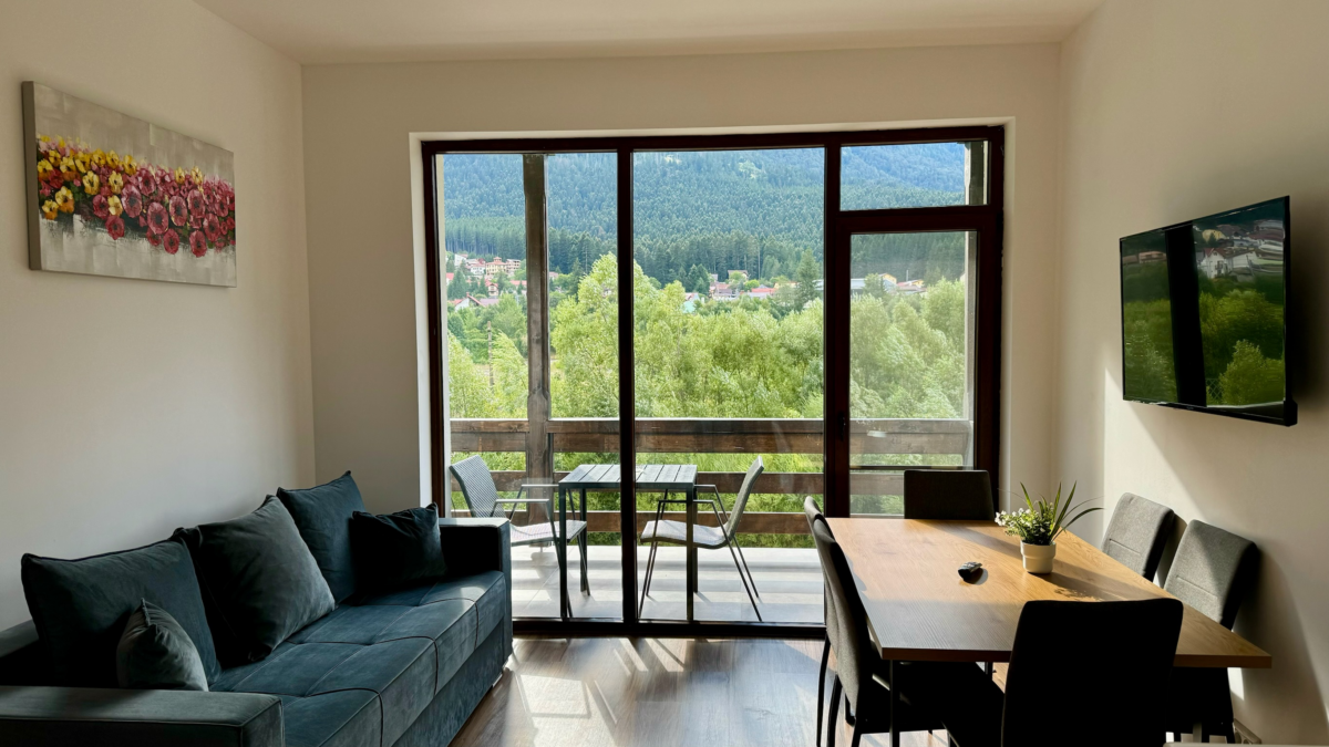 Descoperă confortul și eleganța Apartamentului Superior Bușteni Mountain View Suites by the River! 🏔️✨ Aflat într-o locație de vis, cu vedere spectaculoasă spre munții Bucegi și crucea Caraiman, acest apartament spațios și modern îți oferă toate facilitățile necesare pentru o experiență de neuitat.