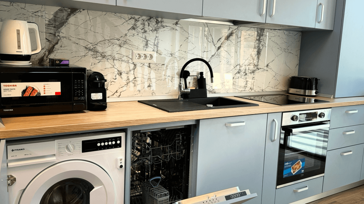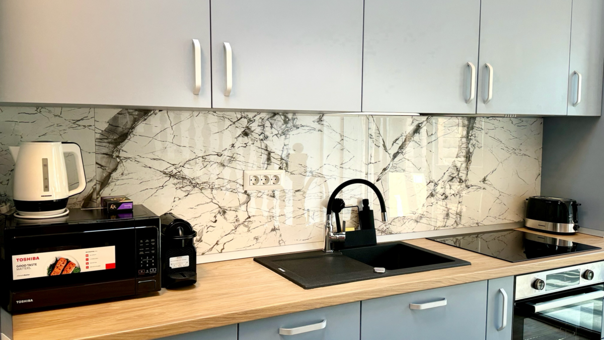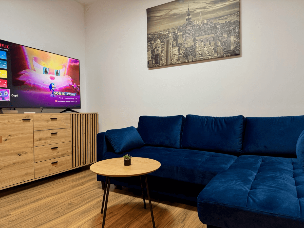 Pentru că ne-am gândit la familii cu copii, apartamentul deține Pătuț pentru copii dar și scaun înalt pentru ca micuții să poată lua masa alături de părinți.