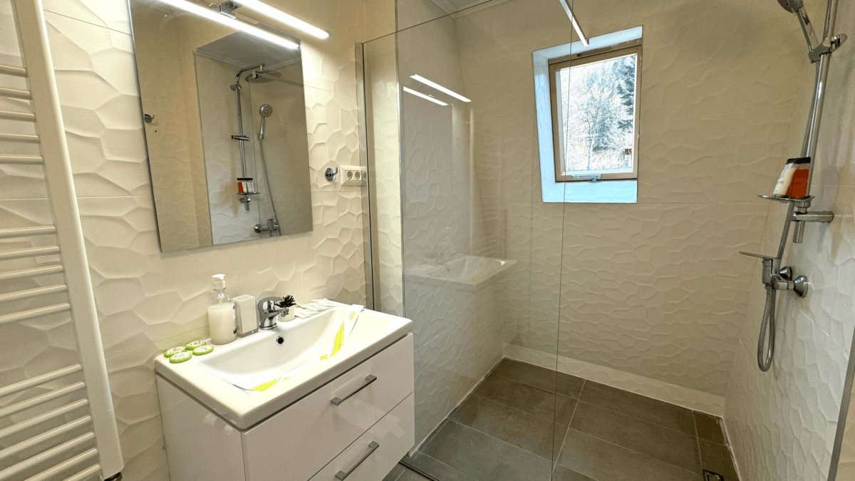 Situat pe malul râului Prahova într-o clădire nouă, cu vedere spectaculoasă asupra munților Bucegi și a crucii Caraiman, Apartamentul Duplex Premium mansardat este poziționat la doar 12 minute de mers pe jos față de centrul orașului Bușteni și de gara Bușteni. Sunetul apei curgând prin fața geamului este extrem de apreciat și relaxant pentru oaspeții noștri.